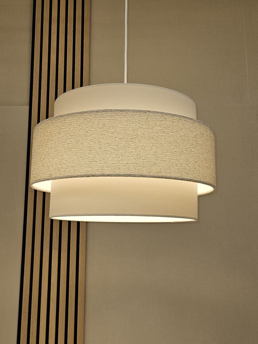 Pušķu lampa ar 4 cilindra formas abažūriem no linu auduma -