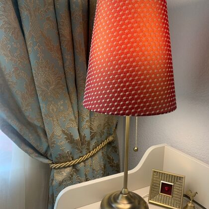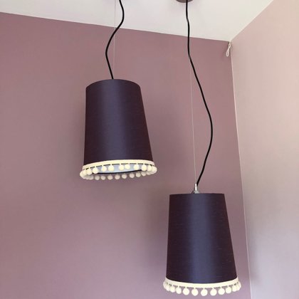 Liels grezna auduma abažūrs ar bārkstiņām -