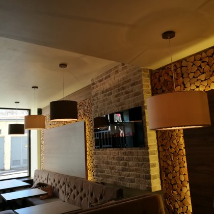 Griestu lampas uz stieņa kafejnīcai Rīgā -