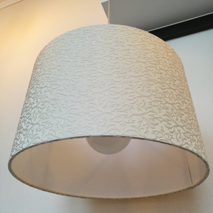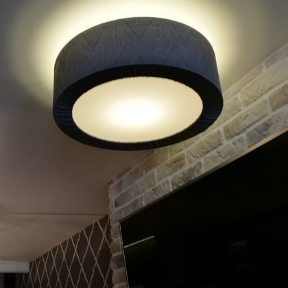 Liela tabletes formas griestu lampa, D70cm, ar audumu nosegtu apakšu -