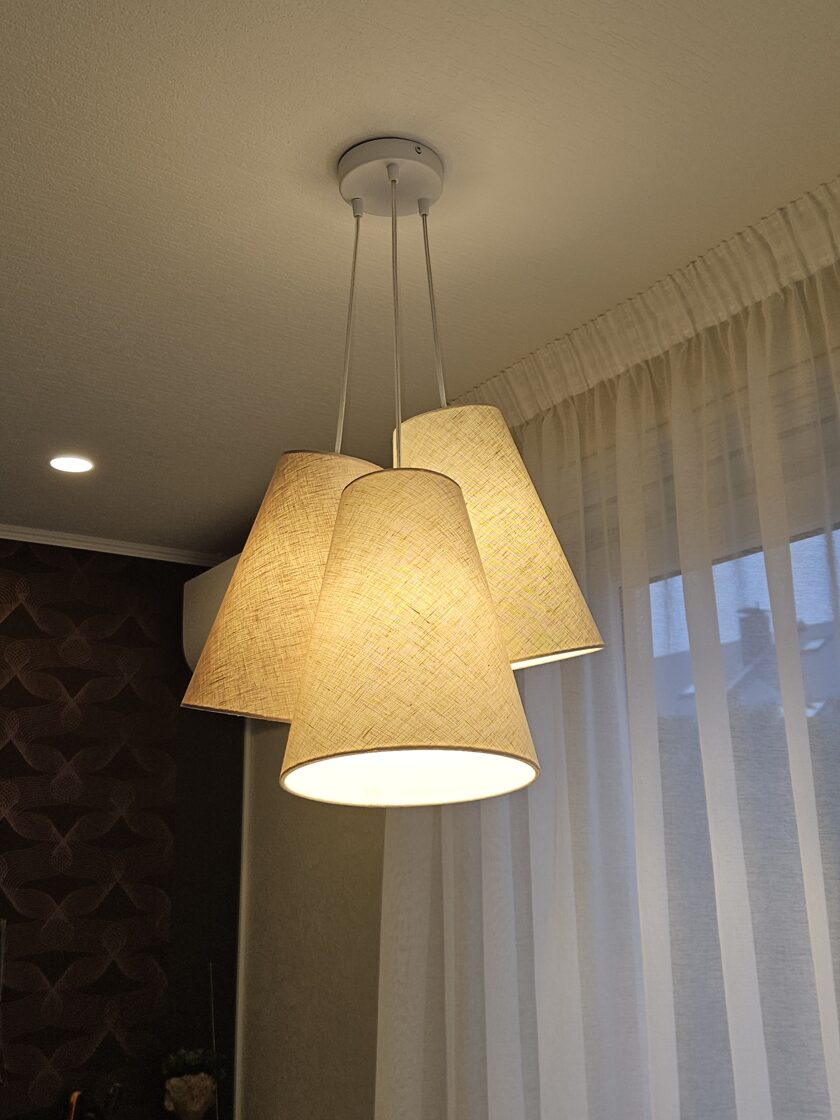 Lampu komplekts no viena auduma dzīvojamai istabai -