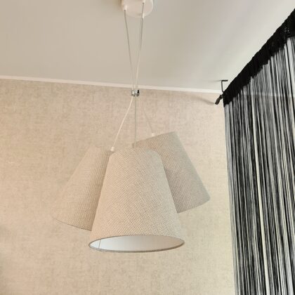 Pušķu lampa virs ēdamgalda no 3 dažadiem linu audumiem -