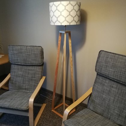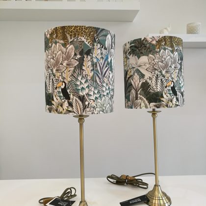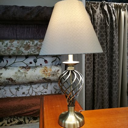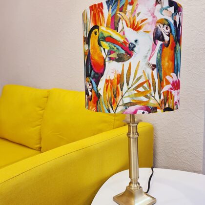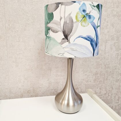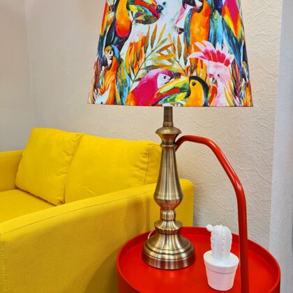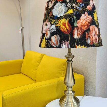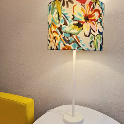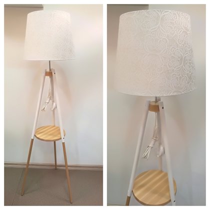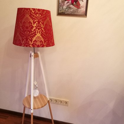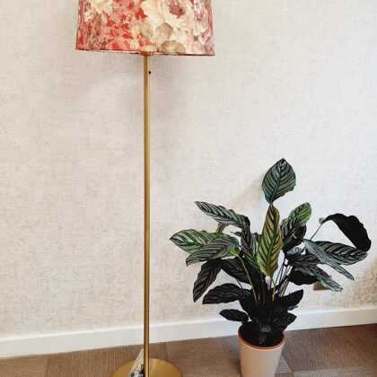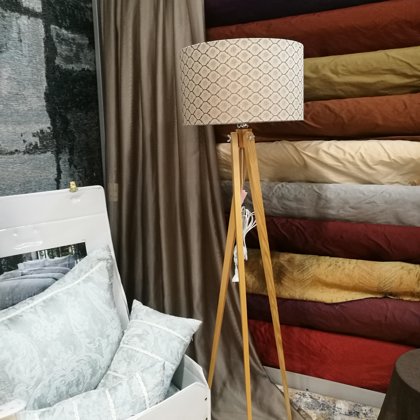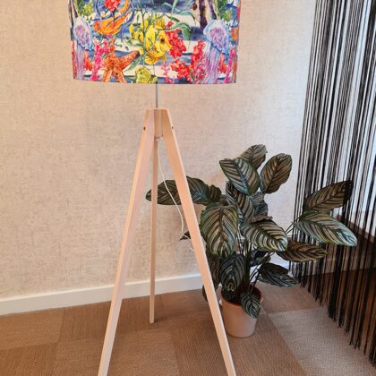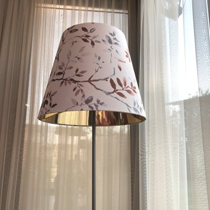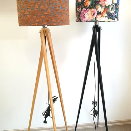 Stāvlampa ar divpusējo abažūru, printa audums iekšpusē -