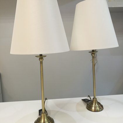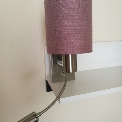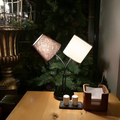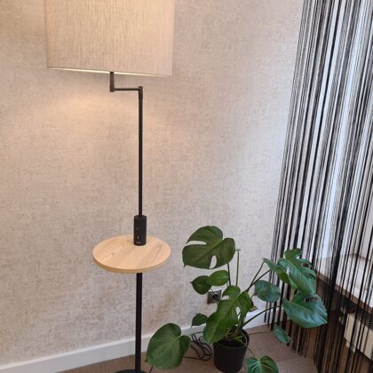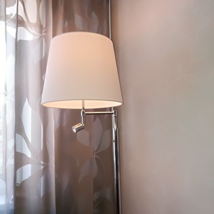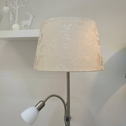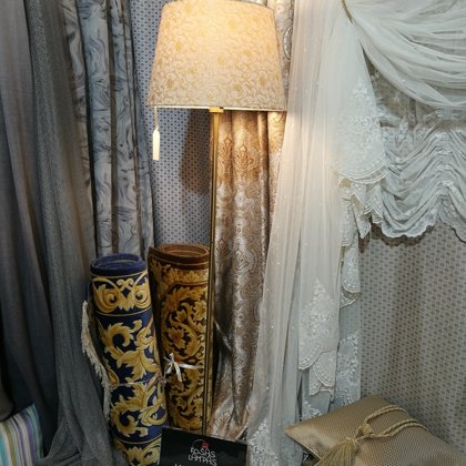 Stāvlampa ar greznu auduma abažūru un papildlampiņu lasīšanai