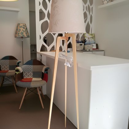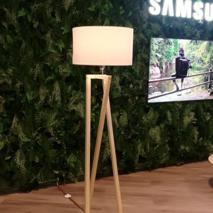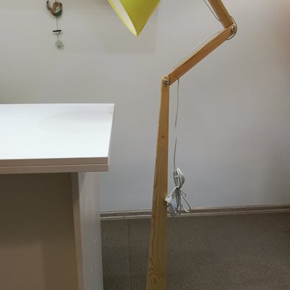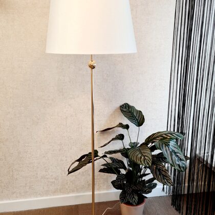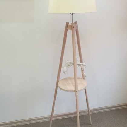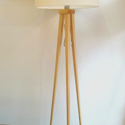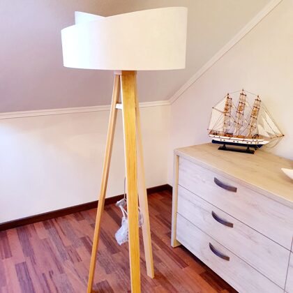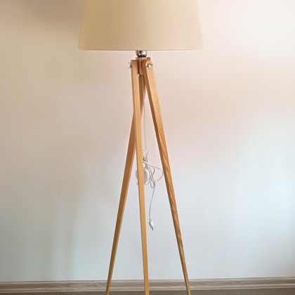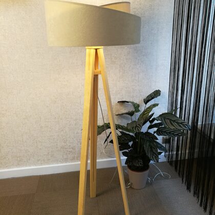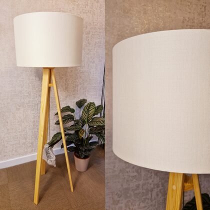 Stabila, gaiša koka stāvlampa ar sniegbaltu abažūru ar lielāko D50cm -