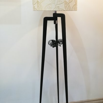 Melna stāvlampa ar skaistu printa auduma abažūru, D40cm H26cm -