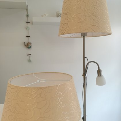 Atjaunots abažūrs un apakšas nosegs Natuzzi stāvlampai, ar linu audumu -